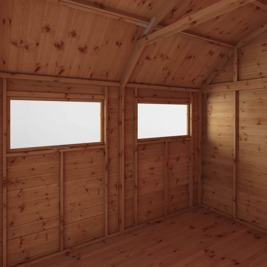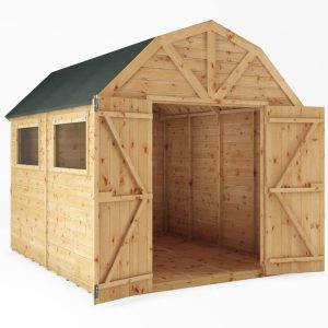 Our 10ft x 8ft Premium Dutch Barn Shed is a unique and spacious storage solution. The vast interior is ideal for storing any outdoor accessory. From garden equipment such as lawnmowers to the entire family’s bicycles. The stylish Dutch barn roof also provides this shed with a generous roof height. Making it the ideal place to store tall items such as strimmers and ladders. Featuring double doors, this shed makes accessing and storing your items super easy.