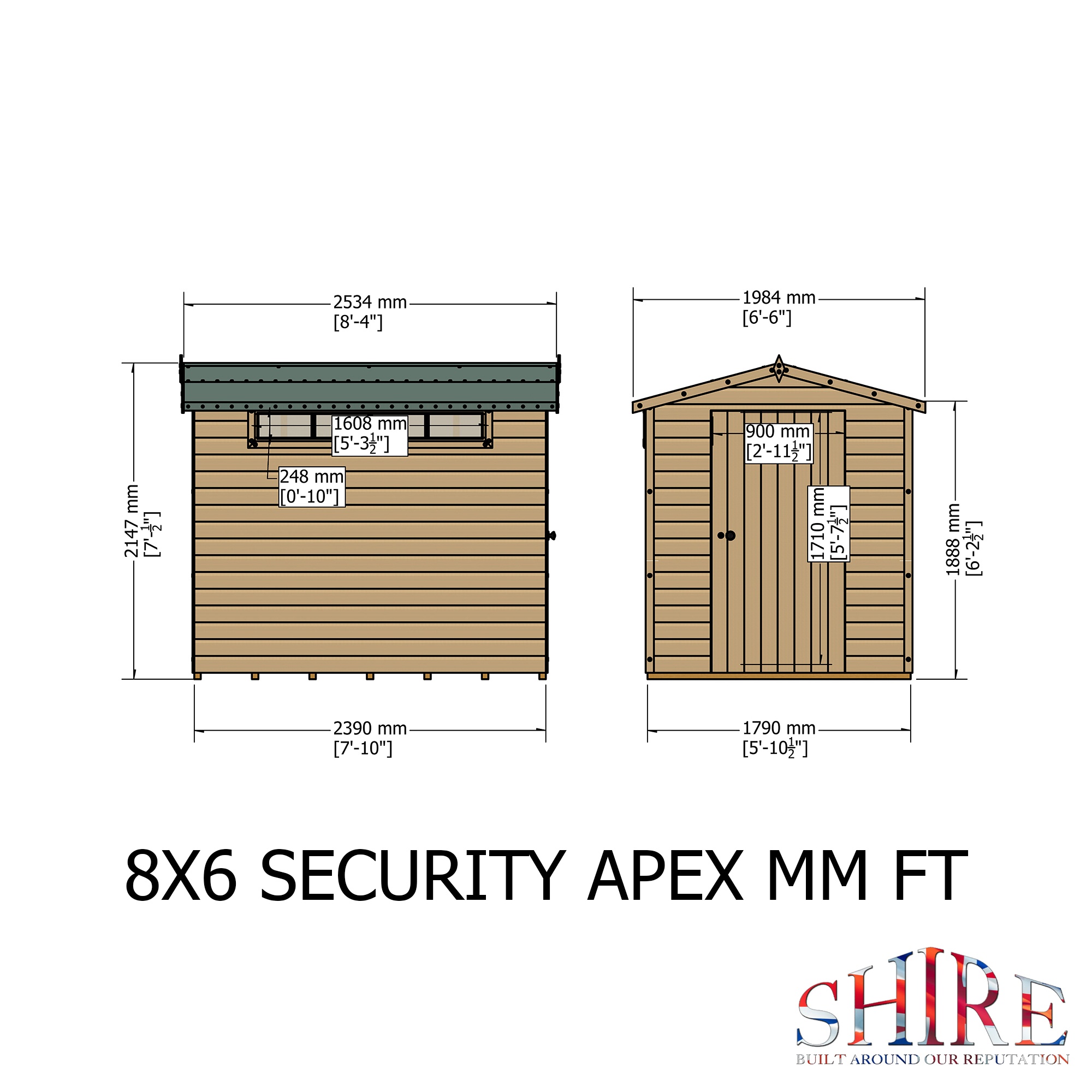 8×6 Security Shiplap Single Door Apex Shed – Shire