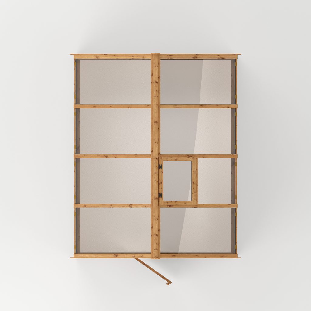The lower section of the greenhouse walls are constructed using premium horizontal interlocking tongue and groove boards with a shiplap profile. The shiplap profile includes a protective and aesthetically pleasing lip to create a strong, weatherproof panel. Complete with thick wooden framing to support the cladding internally, this building offers a rigid and long-lasting structure.