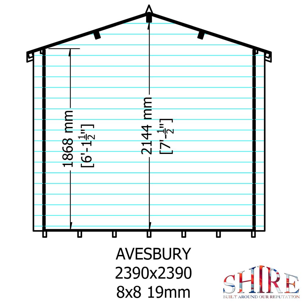 8×8 Shire Avesbury Log Cabin Reverse Apex Roof Single Door