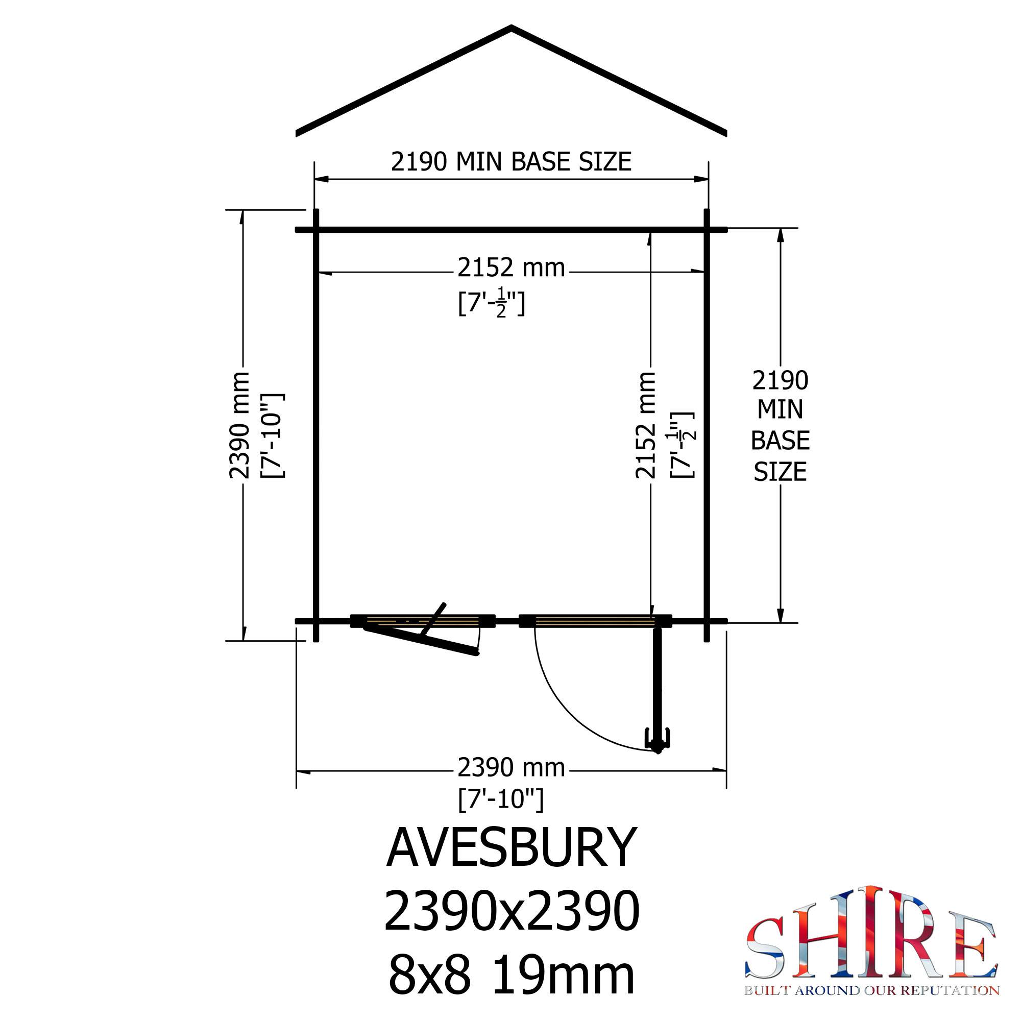 The Avesbury with its half glazed door and matching storm resistant joinery window is a perfect balance between a shed and a summerhouse. Both attractive and highly practical. This top quality log cabin has 19mm interlocking High grade pine boards to the walls and tongue and groove boards to roof and floor. All timber is Forest Stewardship Council (FSC) Certified to produce an environmentally friendly and quality garden building. The building is supplied untreated. Building dimensions are to the edge of the individual boards that make up the unit and will include the crossover of the logs. For critical dimensions use the metric values, Imperial dimensions are rounded for description only. Allowance should be made for the roof overhang and for access around the outside during construction and subsequent treatment. The floor is included.