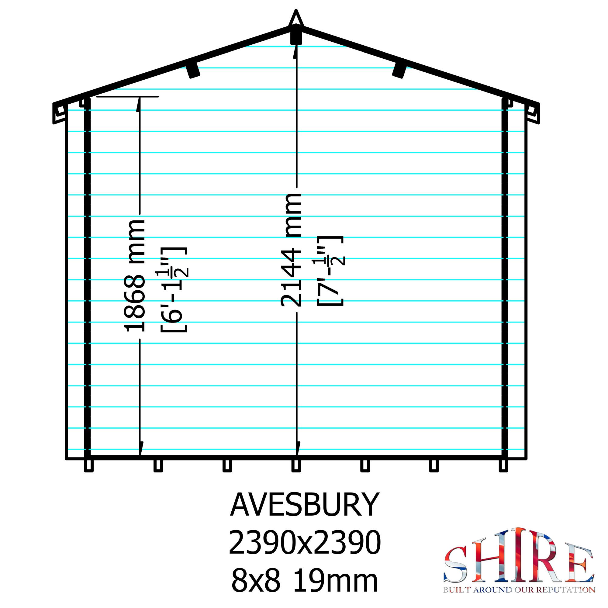 8×8 Shire Avesbury Log Cabin Reverse Apex Roof Single Door