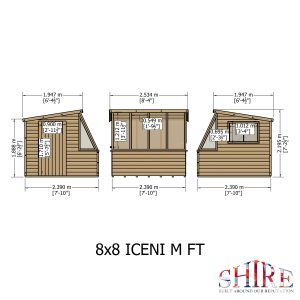 8×8 Shire Iceni Pent Potting Shed Right Side Stable Door Style A