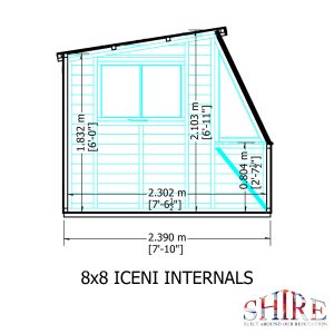 Built to last, the Iceni boasts quality features like a robust 44mm framework, 12mm tongue and groove roof and floorboards for weather resistance, and 12mm shiplap cladding for added strength and protection. Environmentally friendly, shatterproof styrene is used in the front glazing, while the side window utilizes horticultural glass. The stable lockable door adds a layer of security for your precious gardening tools and supplies.