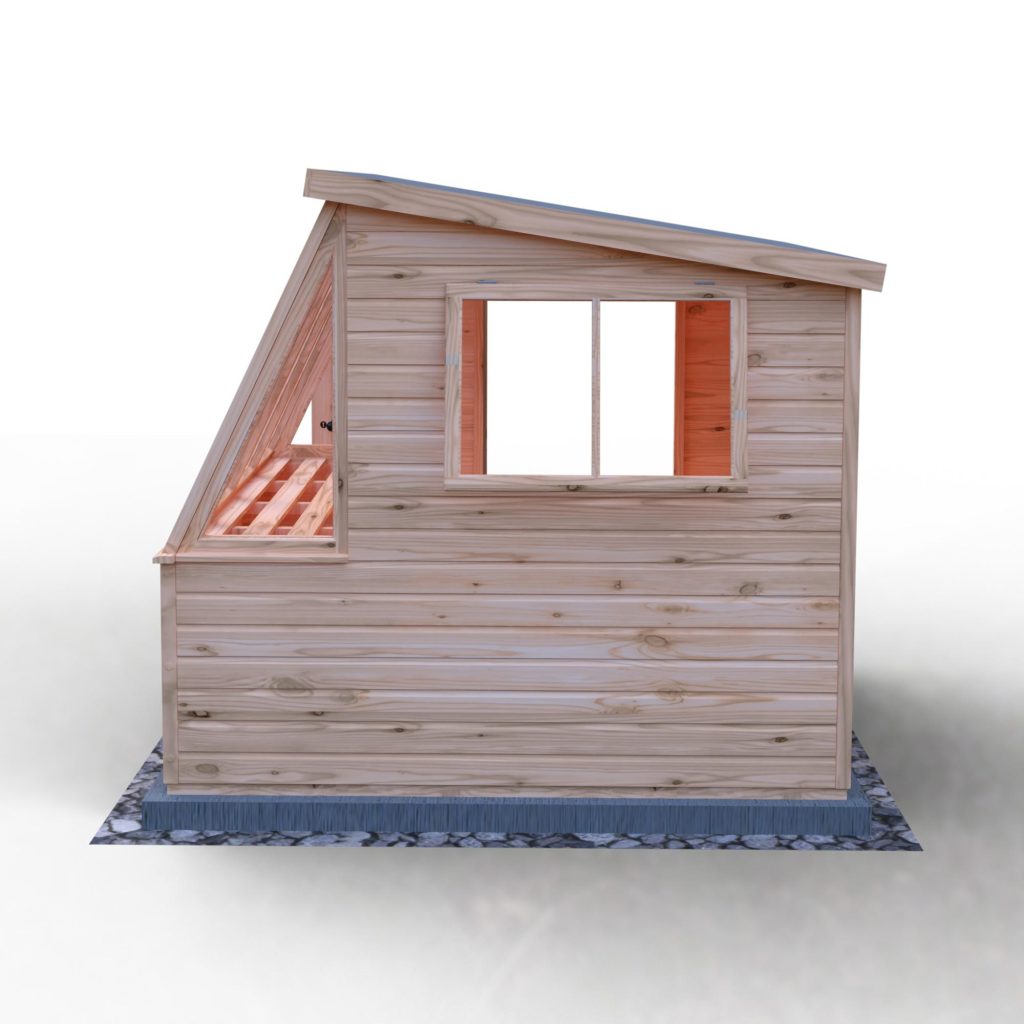 For optimal climate control, an opening window on the opposite side of the door ensures proper airflow and temperature regulation. And to personalize your setup, choose between having the door placed on the right or left-hand gable, ensuring the glazed side receives maximum sunlight while maintaining easy access.