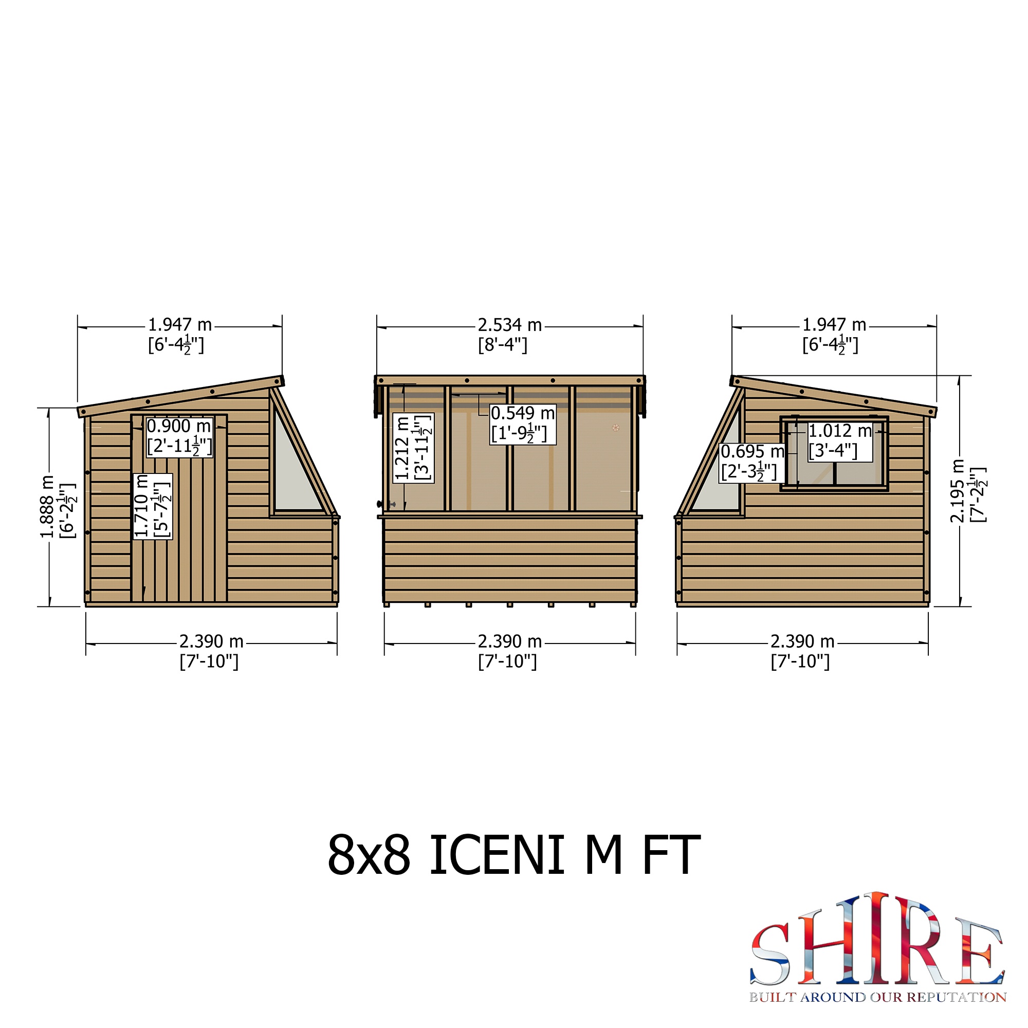 8×8 Shire Iceni Pent Potting Shed Right Side Stable Door Style A