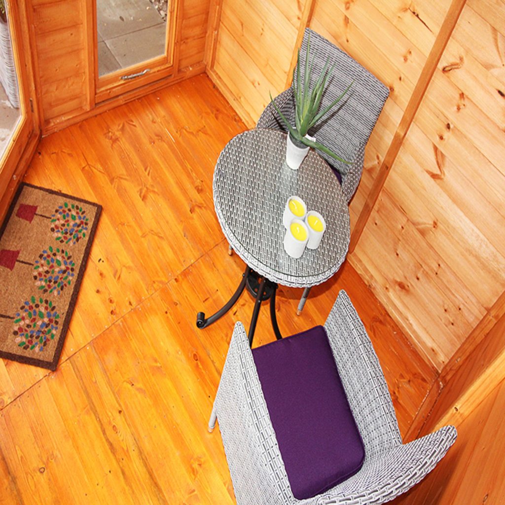 The Larkspur is a magnificent corner summer house designed to transform your garden and provide maximum enjoyment. With its full height, styrene safety glazed windows and doors, this summerhouse lets in lots of light and is a delight to spend your time in.