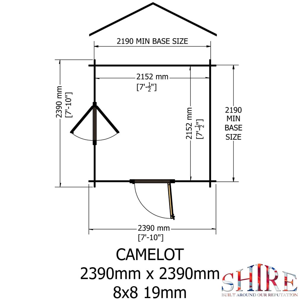 9×8 Shire Camelot Log Cabin Apex Roof Single Door