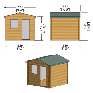 The Avesbury with its half glazed door and matching storm resistant joinery window is a perfect balance between a shed and a summerhouse. Both attractive and highly practical. This top quality log cabin has 19mm interlocking High grade pine boards to the walls and tongue and groove boards to roof and floor. All timber is Forest Stewardship Council (FSC) Certified to produce an environmentally friendly and quality garden building. The building is supplied untreated. Building dimensions are to the edge of the individual boards that make up the unit and will include the crossover of the logs. For critical dimensions use the metric values, Imperial dimensions are rounded for description only. Allowance should be made for the roof overhang and for access around the outside during construction and subsequent treatment. The floor is included.
