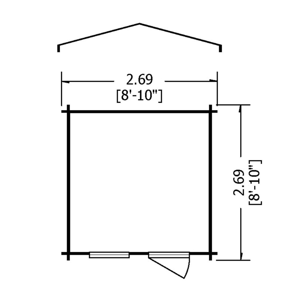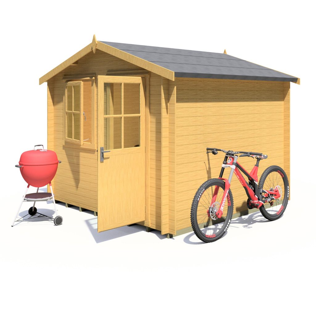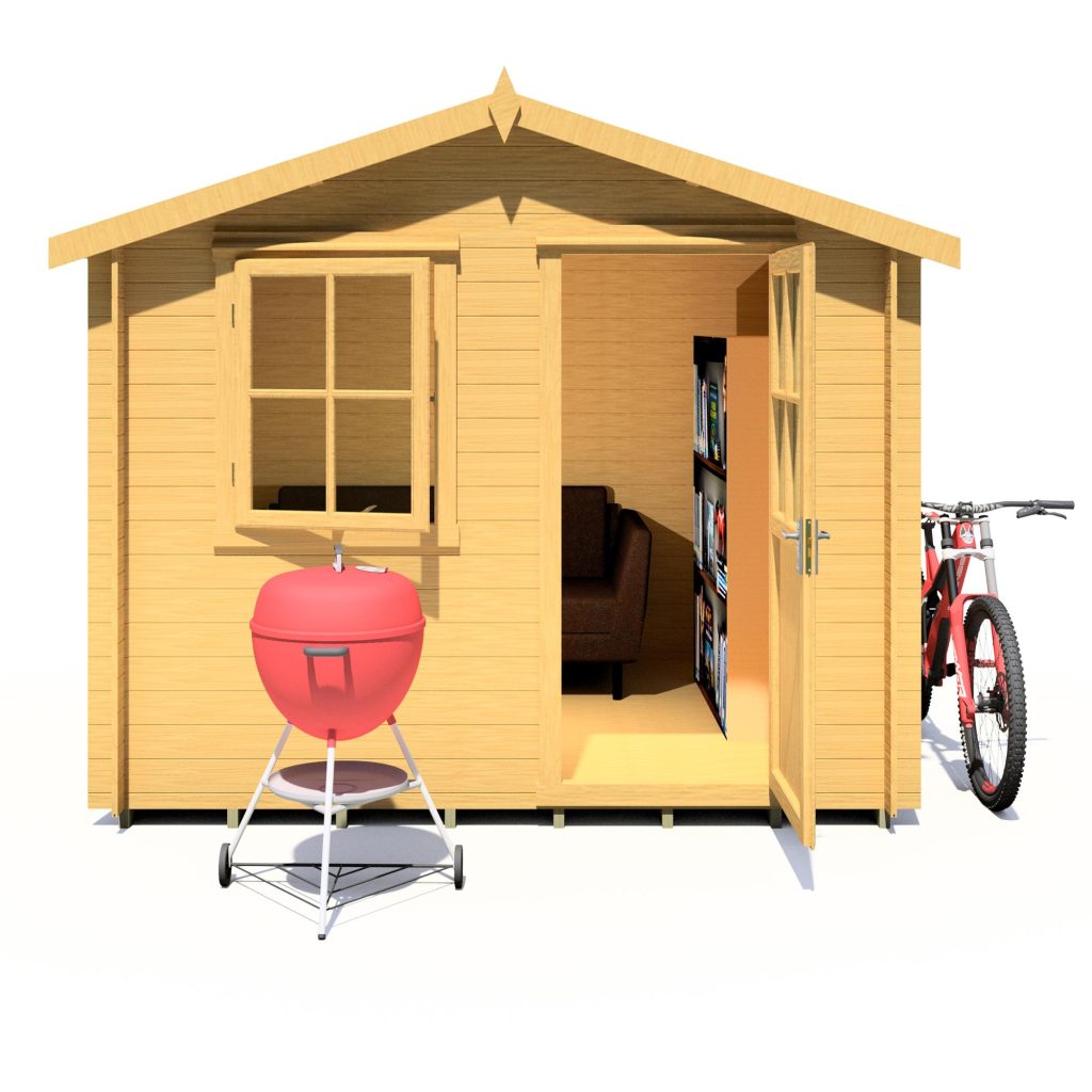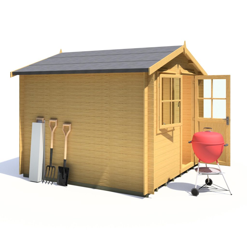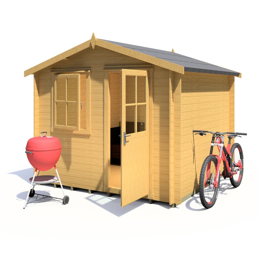 9×9 Shire Avesbury Log Cabin Reverse Apex Roof Single Door