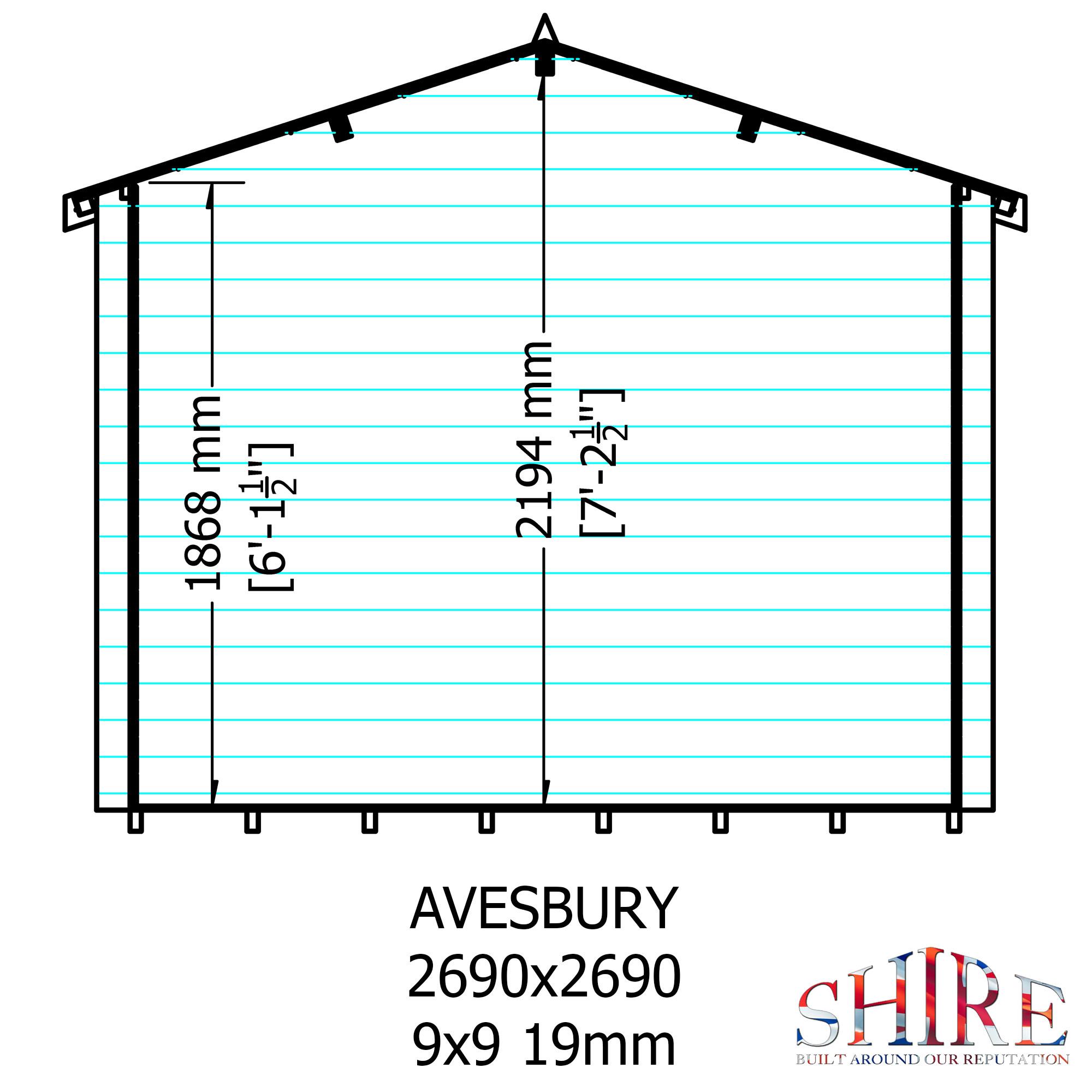9×9 Shire Avesbury Log Cabin Reverse Apex Roof Single Door