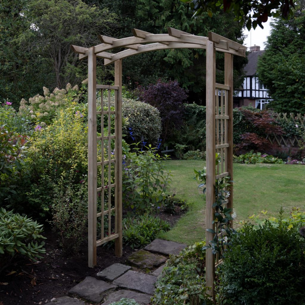 - With a classic curved pergola top and Eastern-inspired trellis sides, the Classic Dome Top Garden Arch from Forest is a great value choice for framing your garden pathways and entrances with timeless style. The curved top of this wooden arch has a much-loved pergola construction. The rectangular trellis is reminiscent of the East and ideal for training your climbing plants.