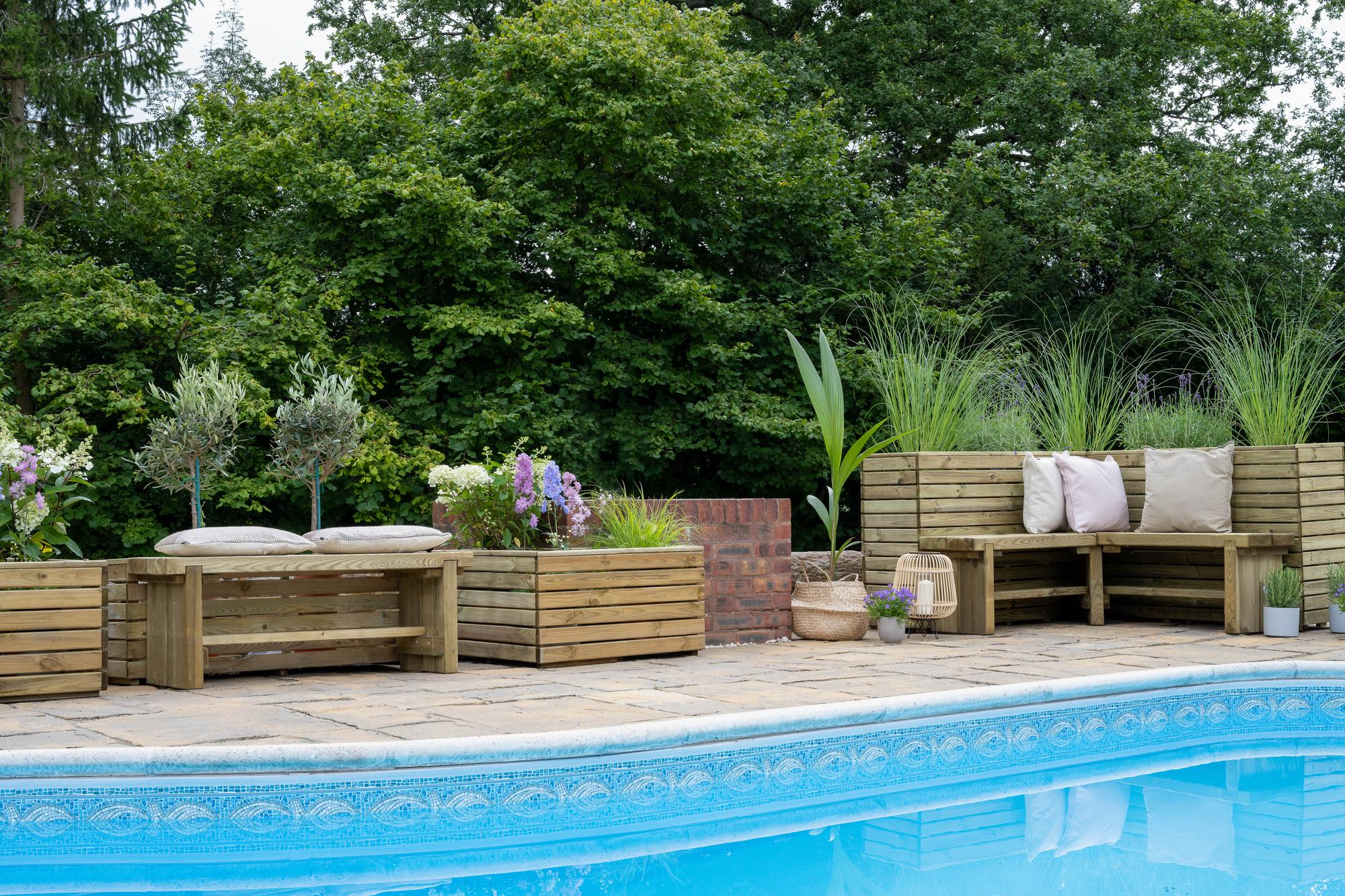 The innovative Sleeper range of furniture from Forest has been designed to be mixed and matched in any configuration. The furniture is sturdy and contemporary with simple lines to create a more informal look. The Double Corner 1.2M Sleeper Bench looks great on its own but when combined with the Linear Corner Planter 160cm looks even better and creates a great corner focal point.