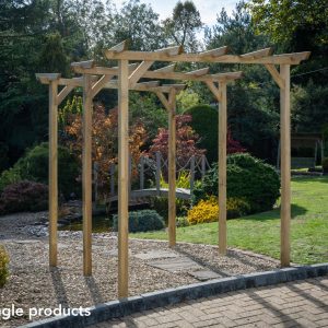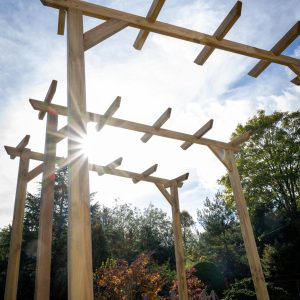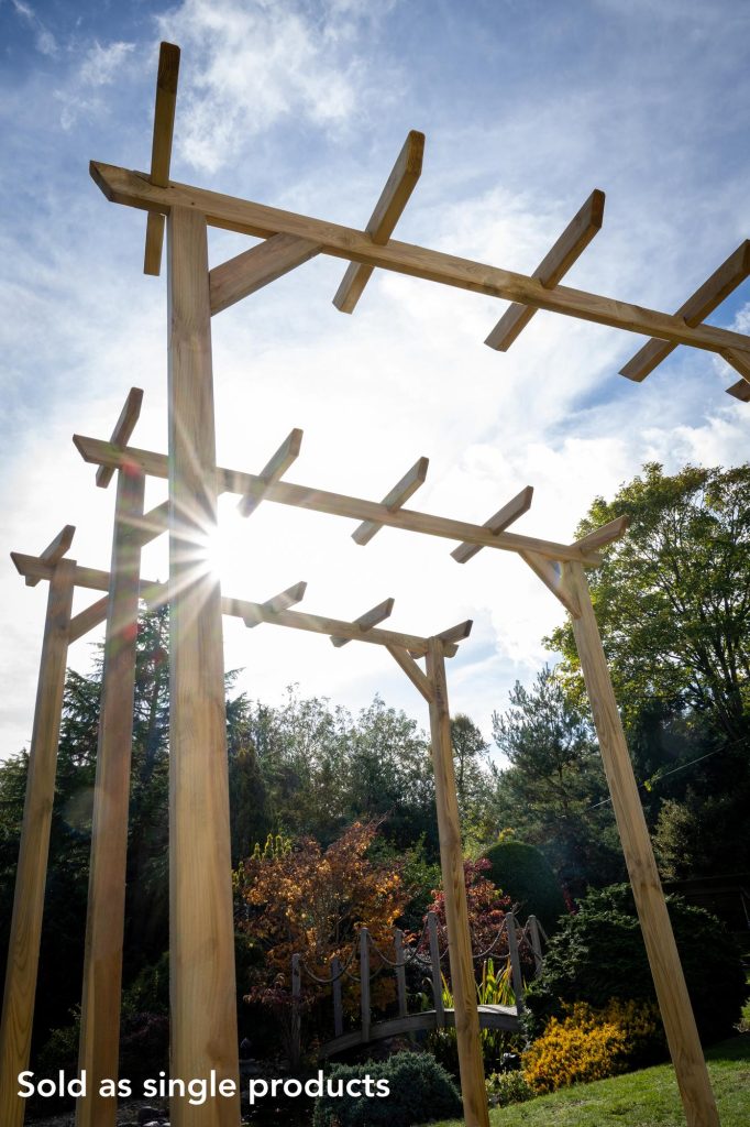 The classic pergola top combined with simple, strong lines makes this wooden garden arch a powerful feature for your garden. Use the wooden arch to frame your garden path, entrance way or seating area.