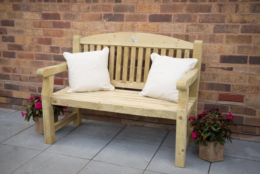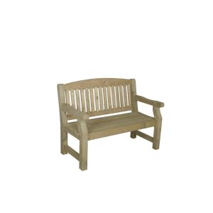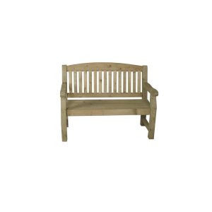 - The beautiful Harvington 4ft Garden Bench from Forest is the perfect place to sit, relax and enjoy your garden from. A solid, traditional bench with high arms and an attractive curved, slatted back. For a superior build, the bench has been manufactured from Pressure Treated timber, which comes with a 15 year guarantee against rot and fungal decay. It's crafted from smooth-planed timber for a comfortable and splinter free finish. Delivered flat packed for easy self-assembly, fixings and instructions included.