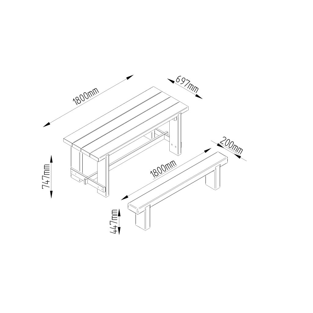 Refectory Table and Sleeper Bench Set – 1.8m (-) Pressure Treated