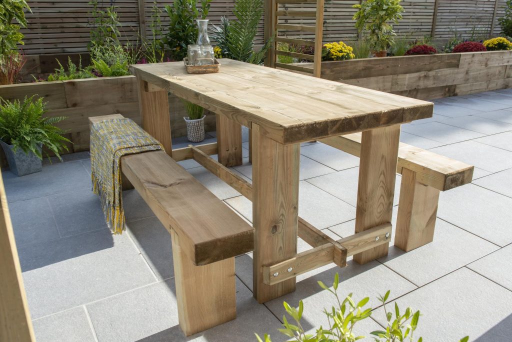 The comfortable smooth-planed Sleeper Benches and matching Refectory Table create the perfect outdoor space to dine with family and friends. They look great on patio and decked areas or under a pergola.