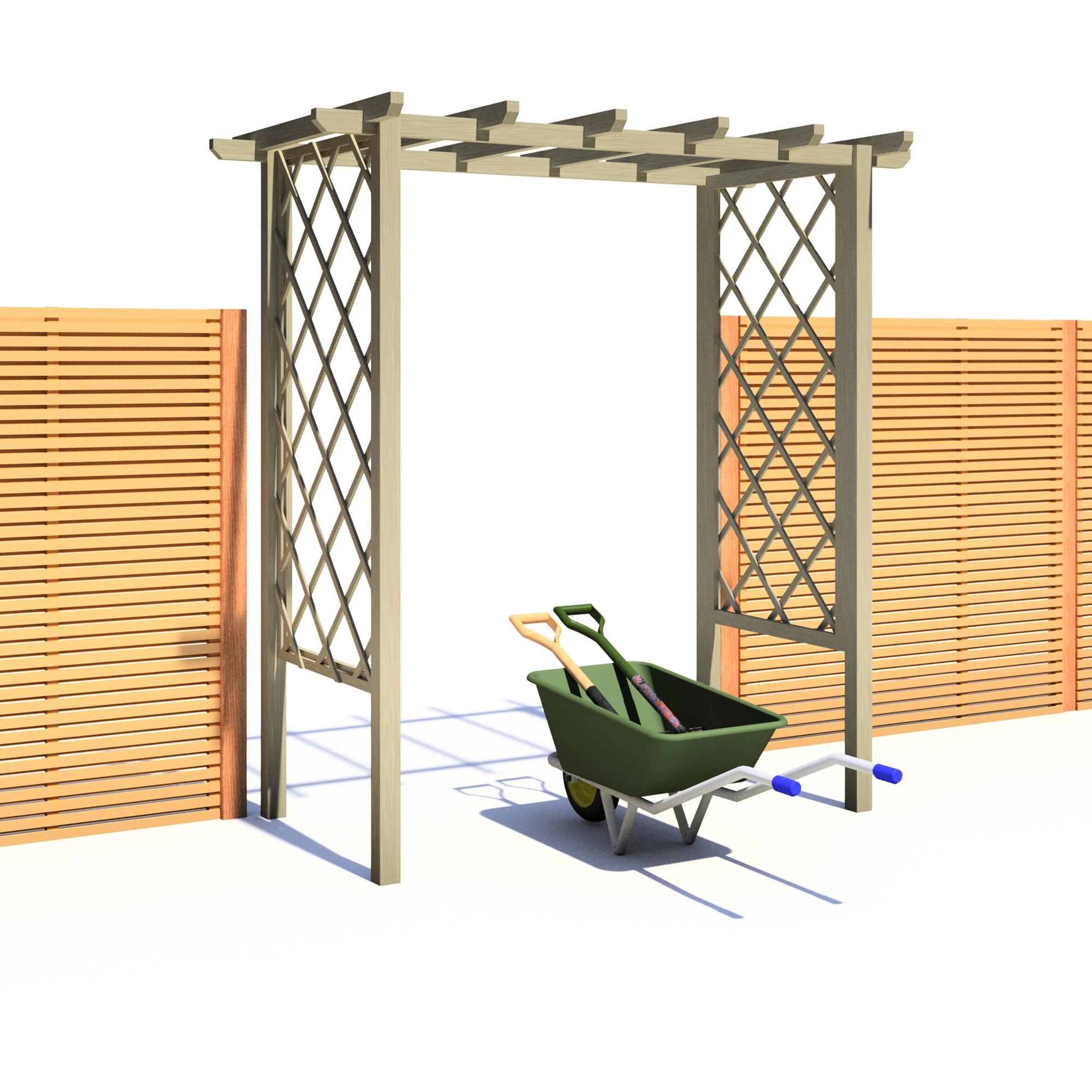 This pretty trellis arch is perfect to make a garden path more interesting! Manufactured in the UK from slow grown, high grade FSC certified timber, the pressure treated finish gives a longer life with low maintenance. The pressure treated finish can be left in its natural colour although can be painted or stained should you wish to personalise the arbour to suit your existing garden design. The posts are 70 mm square with roof purlins 44 x 70 mm, the sides have a 34 mm square outer frame with 12 x 27mm slats to provide a substantial archway. Easy to assemble and comes complete with instructions. The archway is supplied in its natural pressure treated finish, painted models shown are for illustration only. Following your order, you will be sent a link to choose your delivery day. On the morning of delivery day you will also receive live tracking information. Please see the plan drawing for accurate measurements.